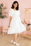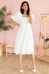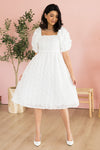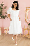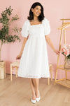 Adorable is an understatement! Our new, modest, Darlee Dress is calling your name! This classy embroidery textured dress features puff sleeves, a square neckline, empire fit, and pockets. Get yours before they are gone!