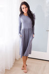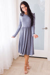 The perfect ruffle shoulder dress has arrived! This little darling is perfect for fall and winter! We are thinking stylish modest layering at it's finest! Pair this beauty with your favorite hat, sweater, booties, you name it!