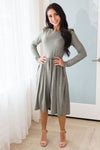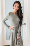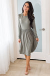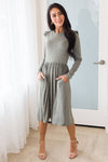 The perfect ruffle shoulder dress has arrived! This little darling is perfect for fall and winter! We are thinking stylish modest layering at it's finest! Pair this beauty with your favorite hat, sweater, booties, you name it!