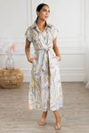 Our new Debra button front dress is perfect for any event or just because you're feeling cute! Features include, classy collared neckline, short cuffed sleeves, belt tie waistline and the prettiest colorful paisley print. This dress is a hit and we promise you can not go wrong adding this beauty to your wardrobe! Talk about a great capsule wardrobe piece!