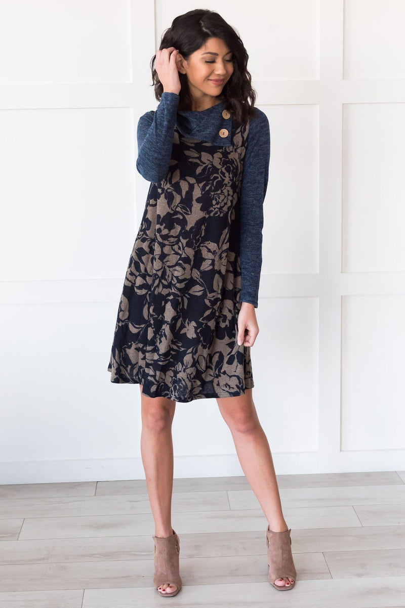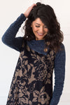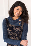 The Denita is the perfect winter piece for your closet!! The heather navy sleeves and cowl neck, taupe and black floral print, long sleeves, and button detailing are all so darling! Make sure to get yours today!