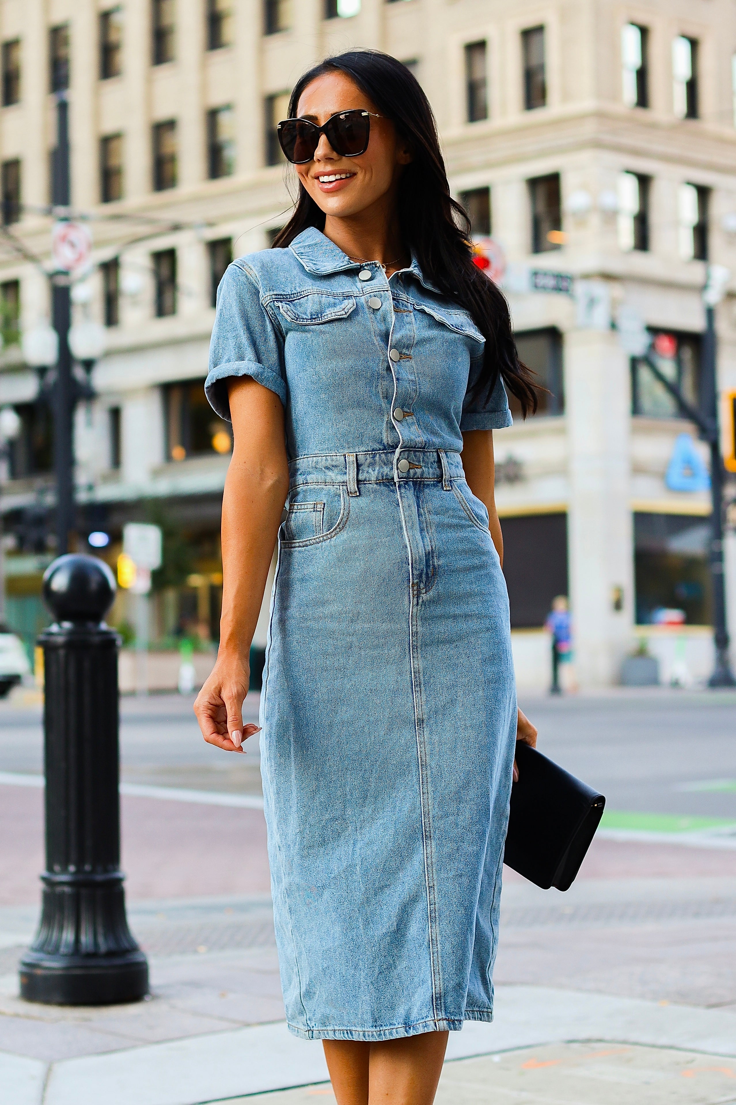 You're about to be speechless! Our new Desirae dress has all the best features to include a modest collared neckline with functional button front bodice, trendy cuffed short sleeves and our favorite pencil fit tea-length skirt. Hurry, these beauties will not last long!