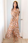 The gorgeous Diana dress has arrived! Trust us when we say you are going to want to add to cart now because this darling dress will sell out quickly! Features include lovely crazy daisy print, short puff sleeves and a ruffle skirt.