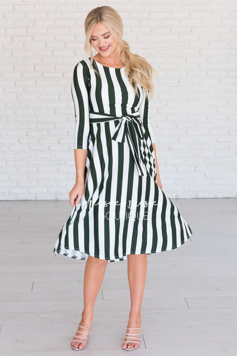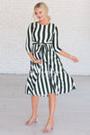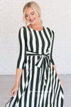 Our gorgeous Dorris is the perfect way to celebrate everyday! The material is super soft, a round neckline, an adorable tie waist, 3/4 length fitted sleeves and pockets! We promise this one is going to go fast! So get yours added to your wardrobe!