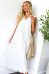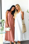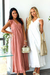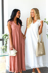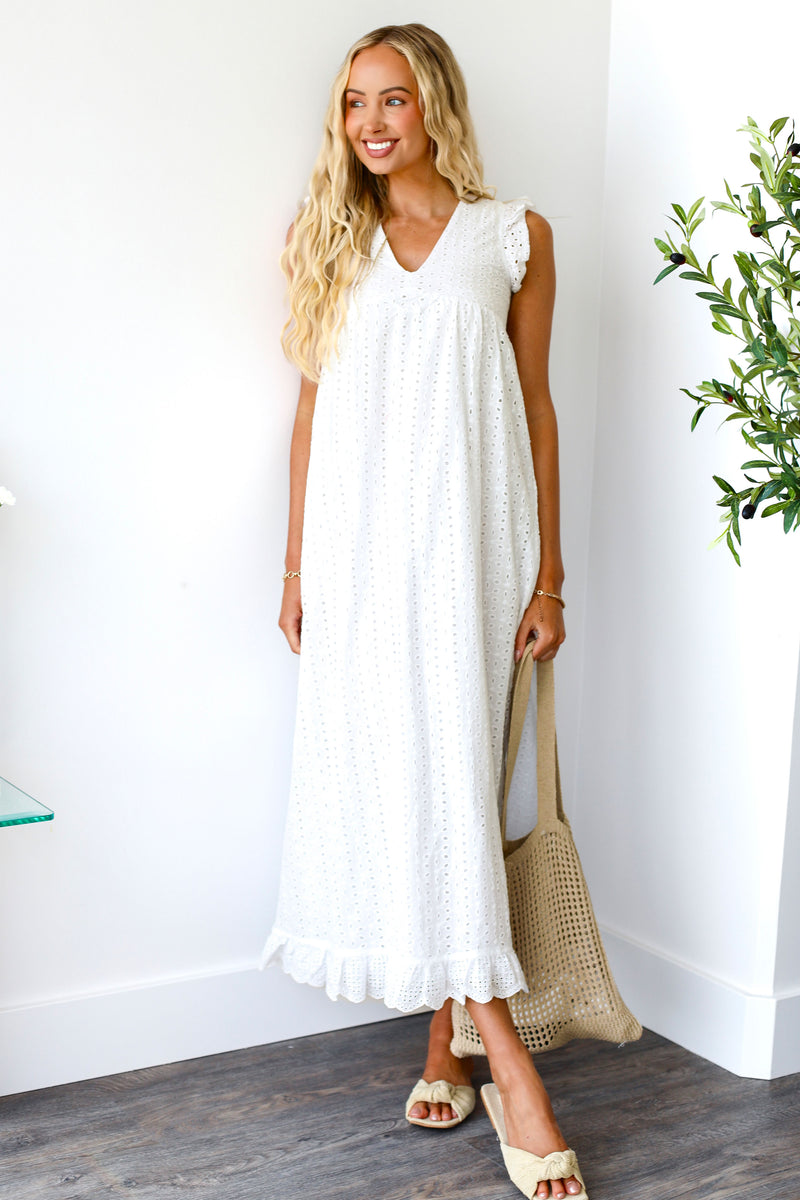 Introducing the spectacular Dutton! Trust us when we say you need this in your wardrobe! Perfect for any season in the darling light coral color, perfect for pairing with your favorite sandals and sunhat! Featuring a v-neckline short flutter sleeves, darling eyelet fabric and perfect maxi ruffle hem skirt. Get yours today!