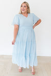 Elegance at its best! The darling new Eden dress has got our attention and we are sure it will have yours too! It has a soft V-neckline, gorgeous short flutter sleeves, a flowy ruffle tier maxi skirt, what more can we say?! This light sky blue beauty has stolen our hearts! This dress is also fully lined except for those lovely flutter sleeves and has a shirred elastic waistband.