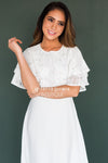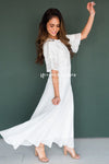 Another cute maxi dress here to steal the show! We are obsessed with the the gorgeous lace bodice and double sleeves. This dress features a round neckline, keyhole button closure on back of neckline, side seam zipper, full flowy skirt and comes fully lined. This is going to be perfect for all those special occasions you have coming up in your life!