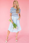 Still need to update your wardrobe with some new cute Spring clothes? Our new Elisha is going to be the perfect dress for you! How adorable is the striped bodice leading into a solid skirt making them the perfect duo. This dress features a crew neckline, short sleeves, lightweight material bodice, elastic waistband and best part is it has pockets!!