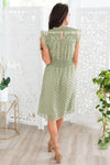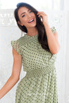 We are all about fun unique stylish prints and the New Eliza did not disappoint! This gorgeous dark sage & black velvet floral pint is simply stunning! Featuring feminine shirred bodice with neck and sleeve ruffle detailing, shirred elastic waistband and a lined flowy skirt. This one is must have for sure!
