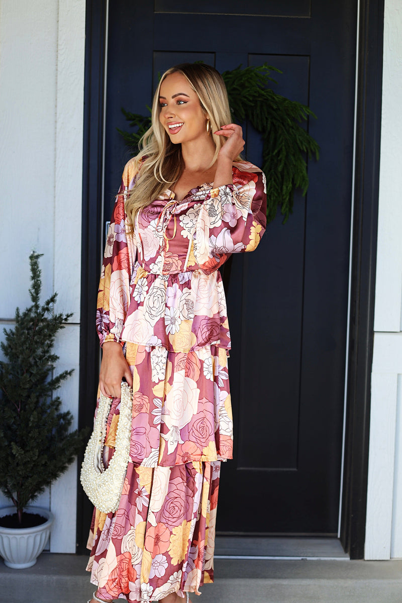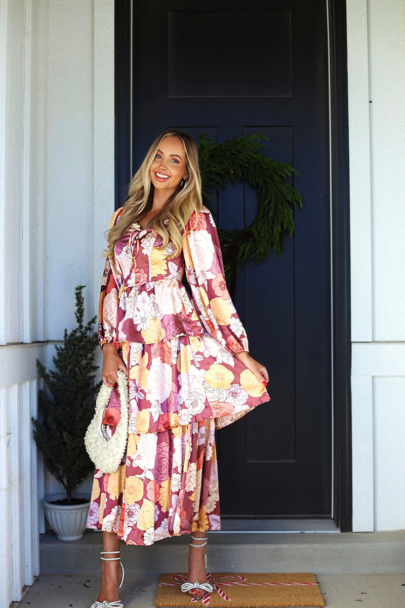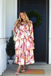 The loveliest dress has stolen our hearts and we are so excited to share it with you all! The Ellary is so flowy and fun! Features include gorgeous long sleeves, sweetheart neckline with ruffled tie details, smocked back and tiered ruffle maxi skirt. Trust us when we say, add to cart now!