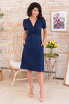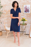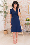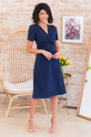 This modest beauty checks all the boxes! Soft, classy, perfect for any occasion! Get yourself the Elletta today! Dress features as always, modest length in a gorgeous flowy skirt, v-neckline, fitted bodice with a delicate knot detail & short sleeves. Simply our new favorite!
