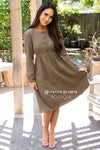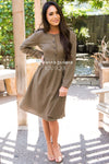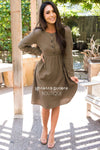Say hello to the New Ellie! We are so confident you'll love this darling little dress as much as we do! It has some of the very best features to include a gorgeous dark olive textured material, rounded neckline, functional buttons on the bodice and long button cuffed sleeves. Can you say adorable?! Grab yours today before they're all sold out!