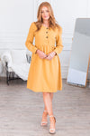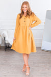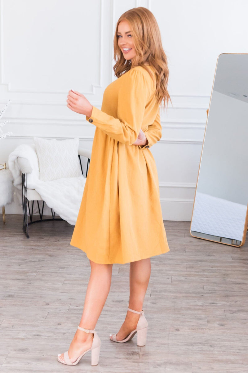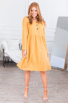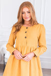 Say hello to the New Ellie! We are so confident you'll love this darling little dress as much as we do! It has some of the very best features to include a gorgeous dark mustard textured material, rounded neckline, functional buttons on the bodice and long button cuffed sleeves. Can you say adorable?! Grab yours today before they're all sold out!