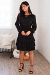 Obsessed with the darling new Eloise dress! This classy feminine ruffle detailed dress is so flowy and dreamy! Features include modest round neckline with tie detail, long sleeves and the most gorgeous flowy tiered ruffle skirt! Get this beauty today!