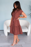The Emerson has arrived just in time to swoop us off our feet this Fall! This darling little corduroy dress is a must have for every Fall wardrobe! Imagine pairing this functional button front dress with your favorite sweaters and boots! Get yours today!