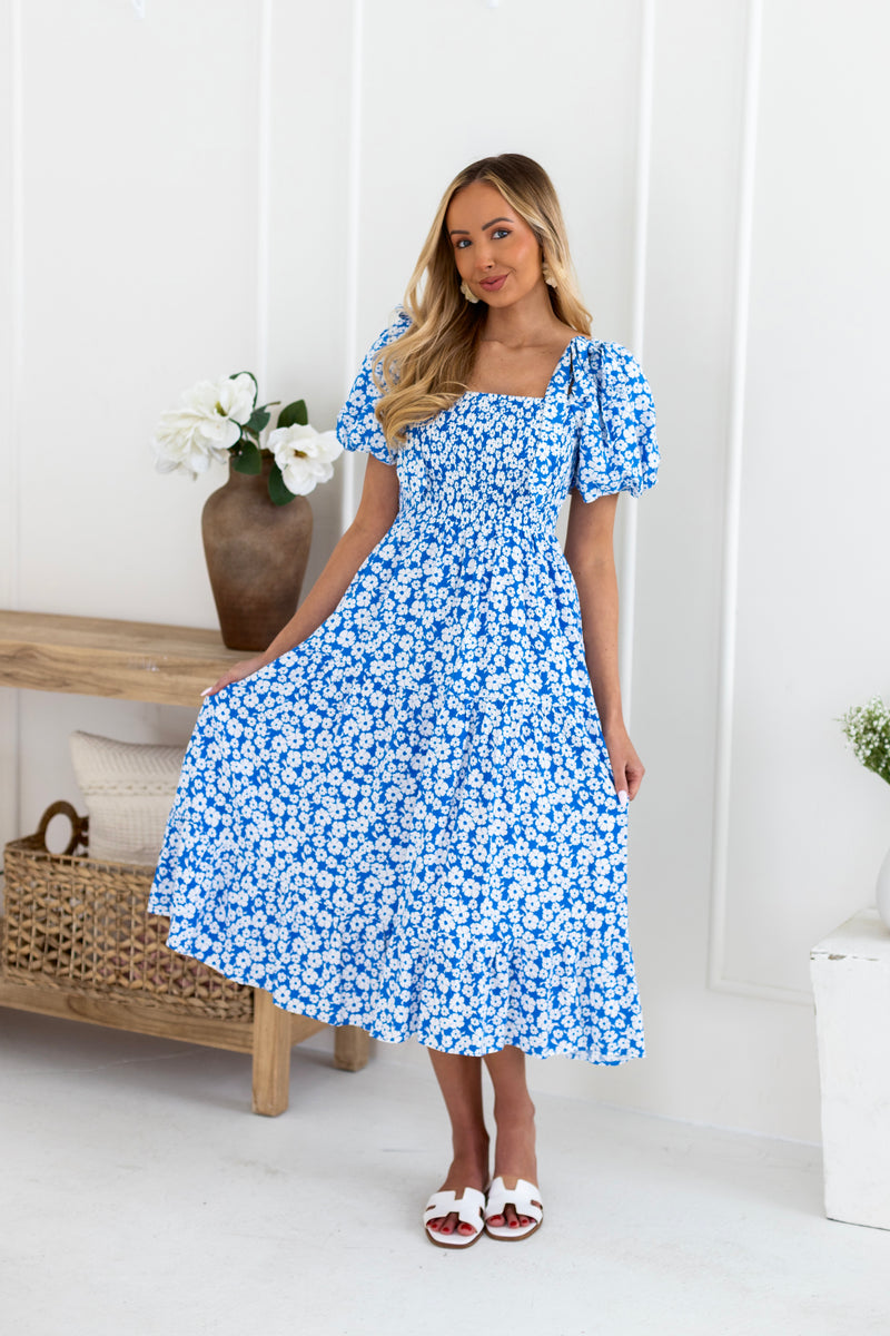 The dress that is perfect every occasion! Meet our modest Emlynne dress, this breathtaking beauty features a modest square neckline with a smocked bodice, short bubble sleeves with feminine shoulder bow detailing, the Spring and Summer worthy floral and our beloved slip on style and ruffle hem skirt. This dress has it all, get yours today!