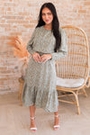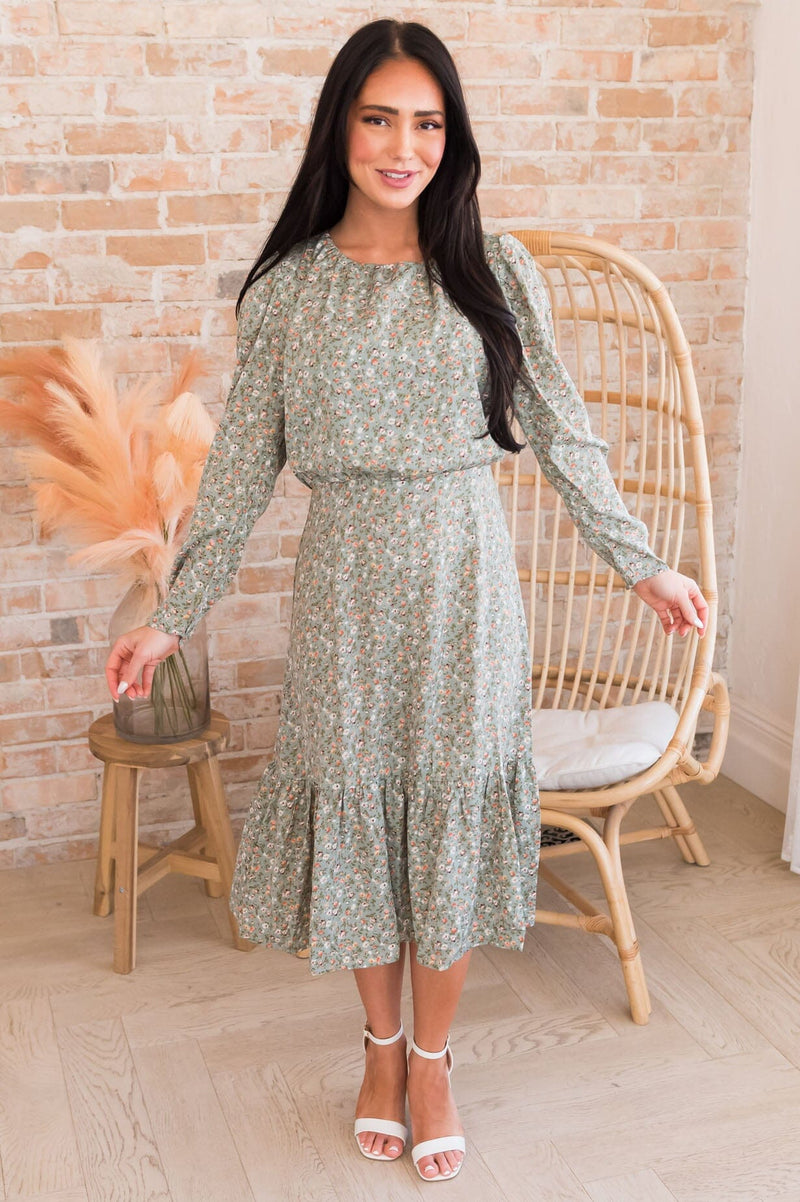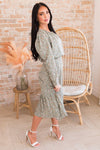The gorgeous Emmalee has arrived just in time for fall! We are loving the long sleeves, the beautiful sage color, dainty rust & ivory floral throughout, and ruffle hemline detailing! You can't go wrong with this one, get yours today!
