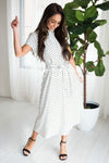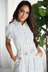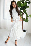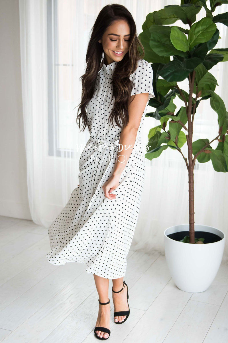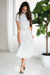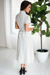 We can't get enough of our new Esther dress! Once you put on this dress you'll gain all those 1920s vintage vibes and feel absolutely stunning. The white and black polka dot color scheme is so timeless and gorgeous. The mock neck gives you perfect coverage but also looks so classy! The bodice has an amazing button up detail that is completely functional! The Esther comes with a tie waist belt which is so fun because there are so many ways to tie it!! It does have a side zipper and pockets!! You will definitely need the Esther hanging in your closet!