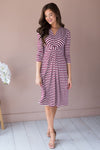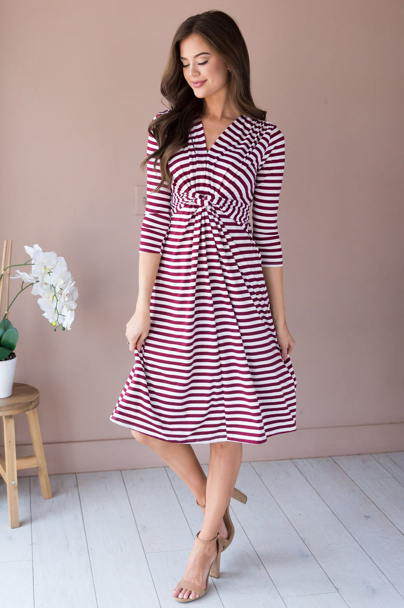 This modest beauty checks all the boxes! Soft, classy, perfect for any occasion! Get yourself the Etta today! Dress features as always, modest length in a gorgeous flowy skirt, v-neckline, fitted bodice with a delicate knot detail & 3/4 length sleeves. Simply our new favorite!