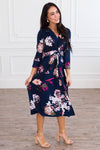 This modest beauty checks all the boxes! Soft, classy, perfect for any occasion! Get yourself the Etta today! Dress features as always, modest length in a gorgeous flowy skirt, v-neckline, fitted bodice with a delicate knot detail & 3/4 length sleeves. Simply our new favorite!
