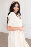 We fell in love with this darling cream crochet detailed dress the moment we saw it! With amazing features such as the stunning half ruffled puff sleeves, babydoll fit with a crochet lace bodice, and flowy skirt! Get yours today!