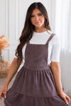 The Everette is the most gorgeous jumper style dress we have every seen! The lovely Truffle color is perfect for this Fall! Along with the darling tiered ruffle skirt and smocked bodice, these details are so feminine and classy! Get yours today before these beauties are sold out!
