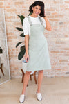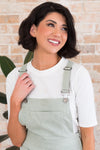 This chic overall dress is perfect for spring! We love that this gorgeous light pistachio green dress can be paired with anything, and is nursing friendly! Featuring a square neckline, a front pocket, and corduroy material! Get yours today!