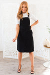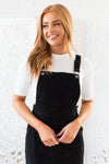 This chic overall dress is perfect for spring! We love that this gorgeous classic black dress can be paired with anything, and is nursing friendly! Featuring a square neckline, a front pocket, and corduroy material! Get yours today!
