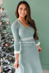 We are totally digging all the vintage vibes you get from our new sage sweater dress! Sage is definitely one of the trendiest colors this season and we can see why it is absolutely stunning. You are honestly going to be so amazed by the softness of this dress; you are not going to want to take it off. This dress features a ribbed bodice with a faux wrap neckline and gorgeous ruffles at the end of the sleeves. What is there not to love about this dress?! It is also perfect for all our nursing mommas!