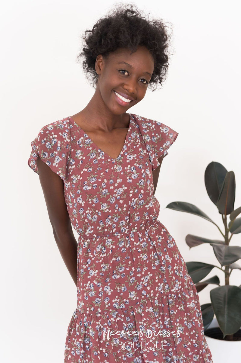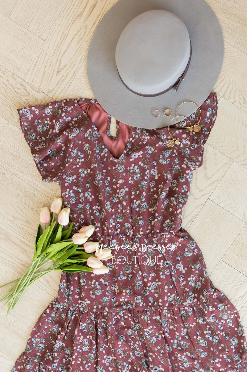 The Finley is our newest floral, this one is bound to take your breath away! We love the lovely color combo with the delicate mini floral. The soft v-neck and short flutter sleeves, elastic waist and last but definitely not least is the feminine tier skirt!