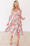 Wow! We just adore this fabulous dress! The stunning floral print and pleated waist are stunning together! Don't forget about the soft v-neck line and long sleeve top makes for this piece to be a elegant choice!