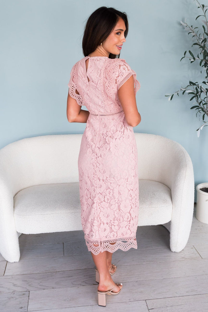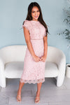 We are in love with stunning new Gabri dress! This gorgeous, modest, lace detailed beauty, is a true must have! Can you say *perfect* dress?! Featuring a modest round neckline, crochet lace detailing, short sleeves, and an adoring tie length skirt. Get yours today!
