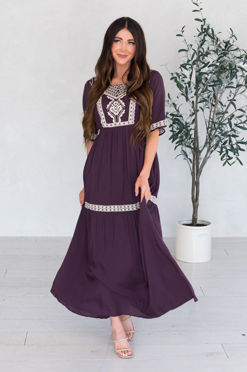 The stunning Garcelle is a must have for every wardrobe! This dress is the perfect pairing for everyone! We are in love with the delicate feminine embroidery, half length sleeves and gorgeous tiered maxi length skirt! Wear this alone or pair it with your favorite sweater and hat, either way it will be a hit!