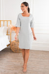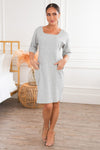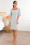 This new Gemini is perfect all around go to dress! There is nothing not to love about this new beauty. Featuring a modest squared neckline, pockets, half length sleeves and an ever so perfect length skirt.! We are absolutely in love with this new arrival!