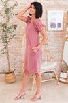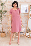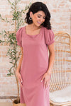 This modest beauty is the definition of simple elegance! Soft, classy, perfect for any occasion! Dress features as always, modest length in a gorgeous shift style dress, lovely squared neckline, pockets & short puff sleeves. Simply our new favorite!