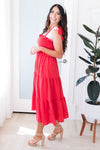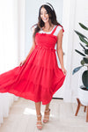 The Genna is the most gorgeous jumper style dress we have every seen! The lovely bright red is perfect for spring and summer! Along with the darling tiered ruffle skirt and smocked bodice, these details are so feminine and classy! Get yours today before these beauties are sold out!