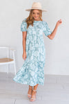 Brand new and ready to be a closet addition! Get the darling Georgian floral today, before it's gone! Features include trendy short puff sleeves, stretchy empire waistline and our favorite tea length skirt. Act fast and click to cart now!