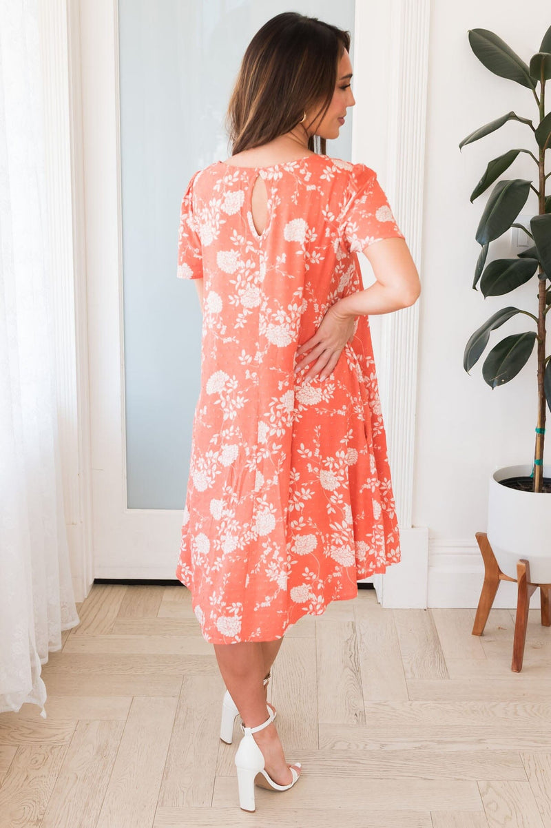 We simply can not get over how darling the new Gertrude is! Super soft, a beautiful dusty mint floral print throughout, short sleeves and swing style skirt & pockets. You can not go wrong with this beauty! Get yours today!