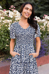 Twirling into a beautiful new day with the beautiful new Gillian dress! Featuring short flutter sleeves, a flattering smocked bodice with a soft v-neckline, pockets and a perfect length flowy ruffled tier skirt! This dress is so dreamy, it's a true must have! Grab this beautiful floral before they are gone!