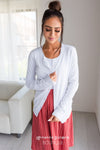 You have to grab this classic cardigan for your wardrobe, it is perfect for layering from season to season! Off white cardi features an open button down front and long sleeves.