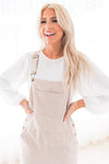 This chic cream overall dress is perfect to wear all year long. We love that this dress can be paired with any accent color. Featuring a square neckline, popular corduroy material, overall straps give you a fashionable nursing friendly option you will be in love for sure. Get yours today!