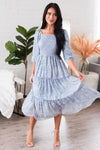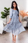 The Greta is perfect from top to bottom! We adore the tiered skirt, square neckline and smocked bodice beyond measure! The chambray floral and flowy material together creates an elegant, yet boho feel! And the quarter length sleeves are oh so pretty!