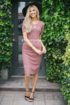 The Gwen is the perfect way to make you feel beautiful this spring! This soft rose mauve dress features a perfect pencil fit, quarter sleeves and a gorgeous textured look with a straight hem!