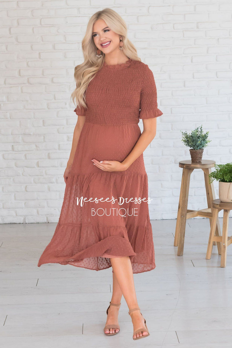 The Haddie has arrived and we promise you, you will want this darling delicate swiss dot tiered dress! So gorgeous, feminine and flowy! Featuring our favorite shirred bodice detailing with short sleeves, elastic waist and is fully lined. Get yours today!