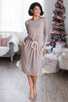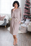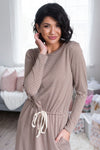 The Hailee is one of our all time favorites and now in a new color! We love the taupe & ivory stripes, perfect for any season! Featuring a round neckline, long sleeves, super soft cozy material and a drawstring waist. Get yours today!