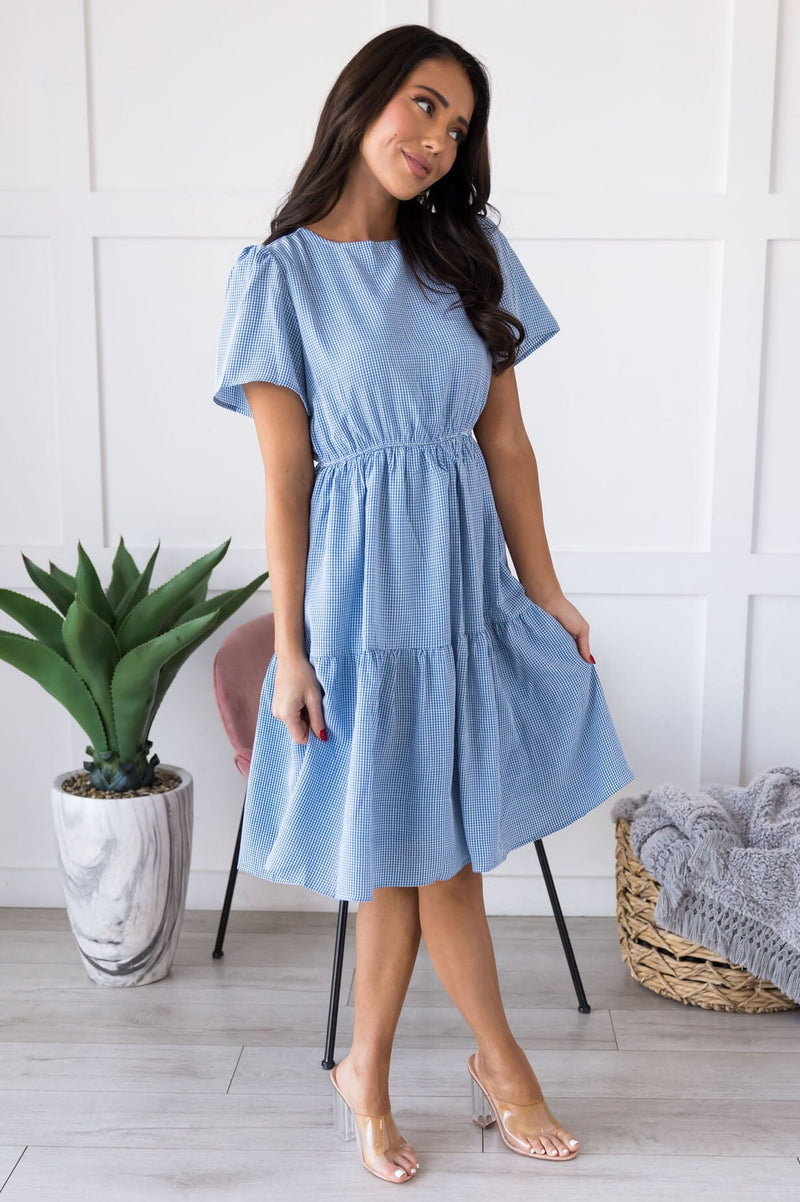The lovely gingham Hailyn has arrived and trust us when we say you must have this beauty! The darling print and tiered midi skirt are the perfect combination. Not to mention the flattering short flutter sleeves, pockets & elastic waistline. Get yours today!