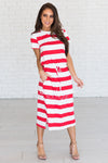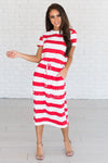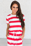 The Hannah is one of our all time favorites and now in a new color! We love the bright coral, it's just perfect for summer! Featuring a round neckline, short sleeves, super soft and cozy material and a drawstring waist. Get yours today!