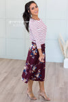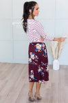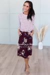 The Hannah Ann is one of our all time favorites and now in a new color and pattern! We love the cranberry stripes on the ivory, it give this Hannah Ann the perfect pop of color! Featuring a round neckline, short sleeves, super soft and cozy material and a drawstring waist. Get yours today!