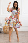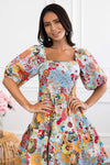 Puff sleeves are our jam! We are obsessed with this gorgeous aqua floral print dress! Featuring modest sweetheart neckline, puff sleeves, flattering smocked backing, ruffled midi skirt and slip on style. You simply can not go wrong with the Hannon, add to cart now!