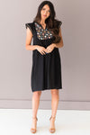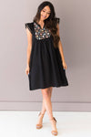 This fabulous embroidered dress is trending and ready to be shown off! The fabulous flutter sleeves with hem detailing and and multi colored embroidered bodice this dress is stunning! The simple flow fit is perfectly modest and oh so fashionable!